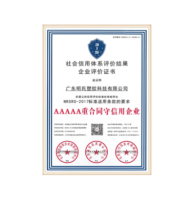 明氏塑膠擁有優(yōu)良的生產(chǎn)設(shè)備和完善的管理體系,本著以“質(zhì)量求生存,信譽(yù)求發(fā)展”的宗旨,秉承“專業(yè)化、規(guī)模化、國際化”的發(fā)展方向穩(wěn)步邁進(jìn),堅(jiān)守質(zhì)量至上原則,遵守規(guī)范標(biāo)準(zhǔn),嚴(yán)格執(zhí)行ISO9001:2015國際質(zhì)量體系,建立起了科學(xué)嚴(yán)謹(jǐn)生產(chǎn)制造體系和售后服務(wù)標(biāo)準(zhǔn),致力于為顧客提供優(yōu)質(zhì)產(chǎn)品和服務(wù)。產(chǎn)品通過塑膠制品監(jiān)督檢驗(yàn),極具市場競爭力,成為了振興國內(nèi)塑膠界的重要力量。