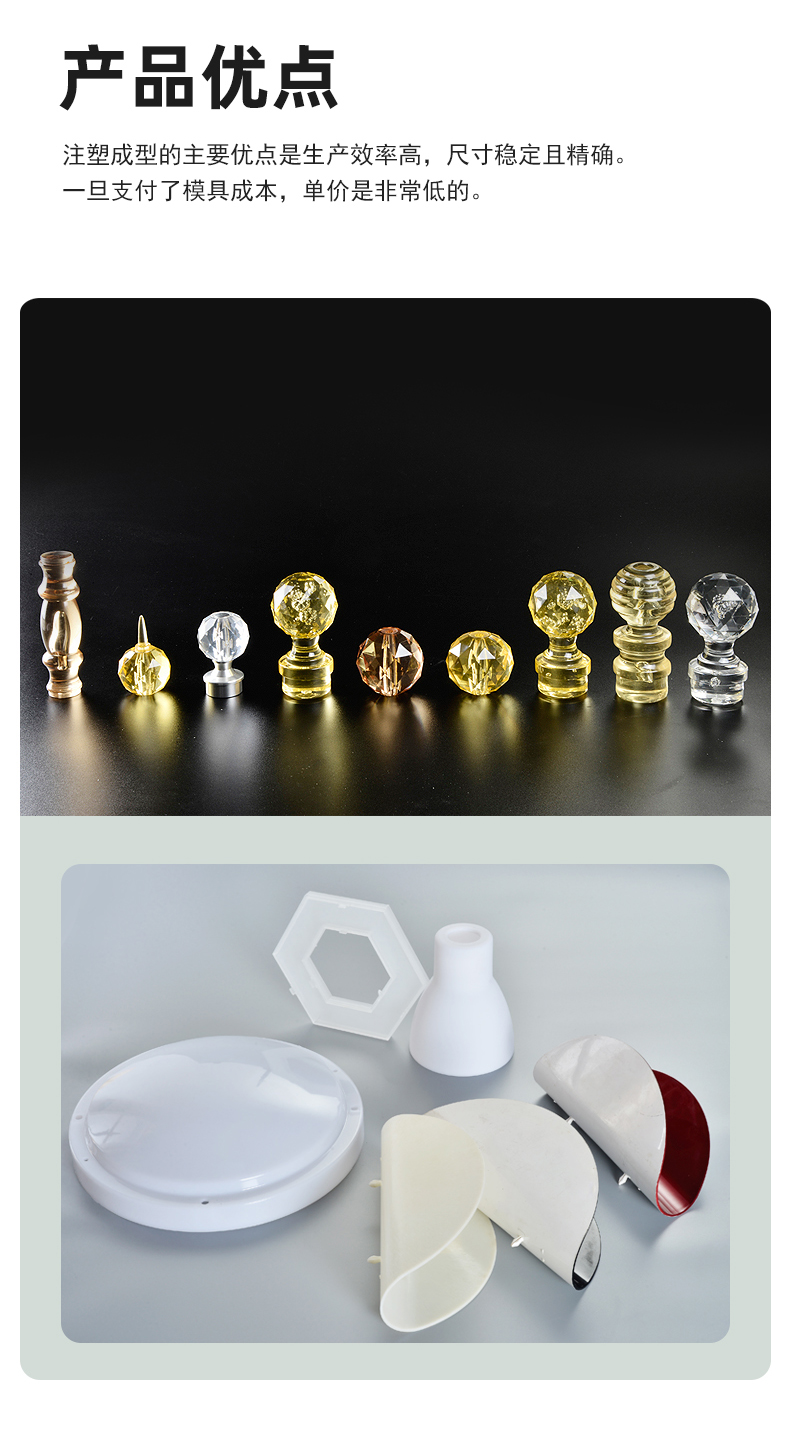 注塑成型的主要優(yōu)點是生產(chǎn)效率高,尺寸穩(wěn)定且精確。一旦支付了模具成本,單價是非常低的。